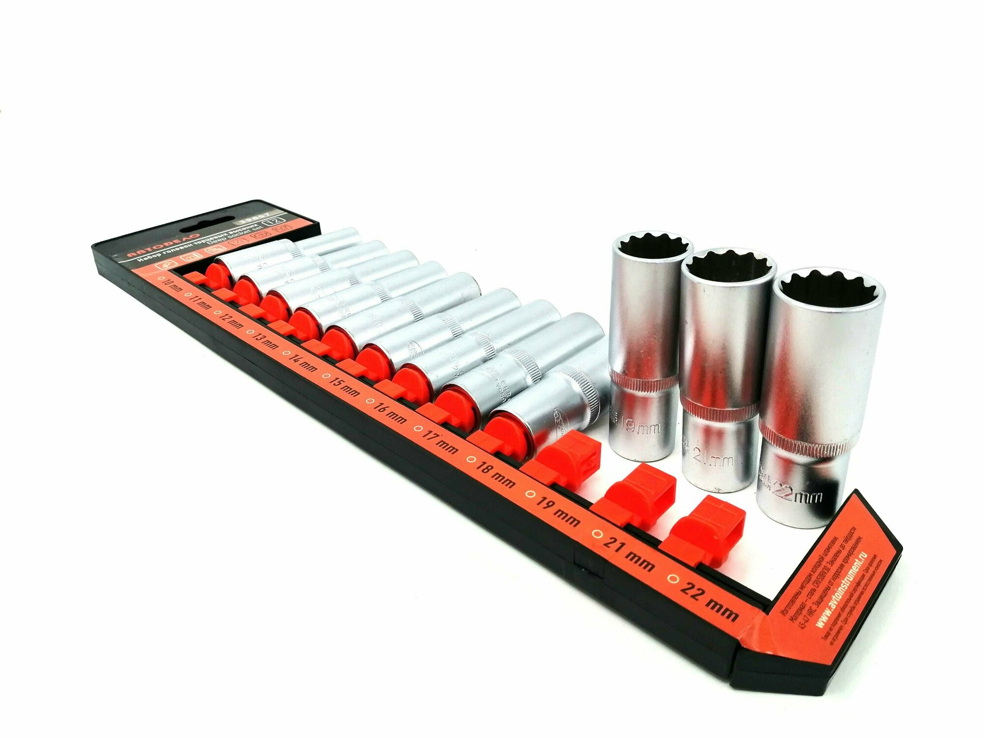 Набор головок глубоких 1/2" 12 пр. 12 гр. 10-22 мм на держателе АвтоДело информация: