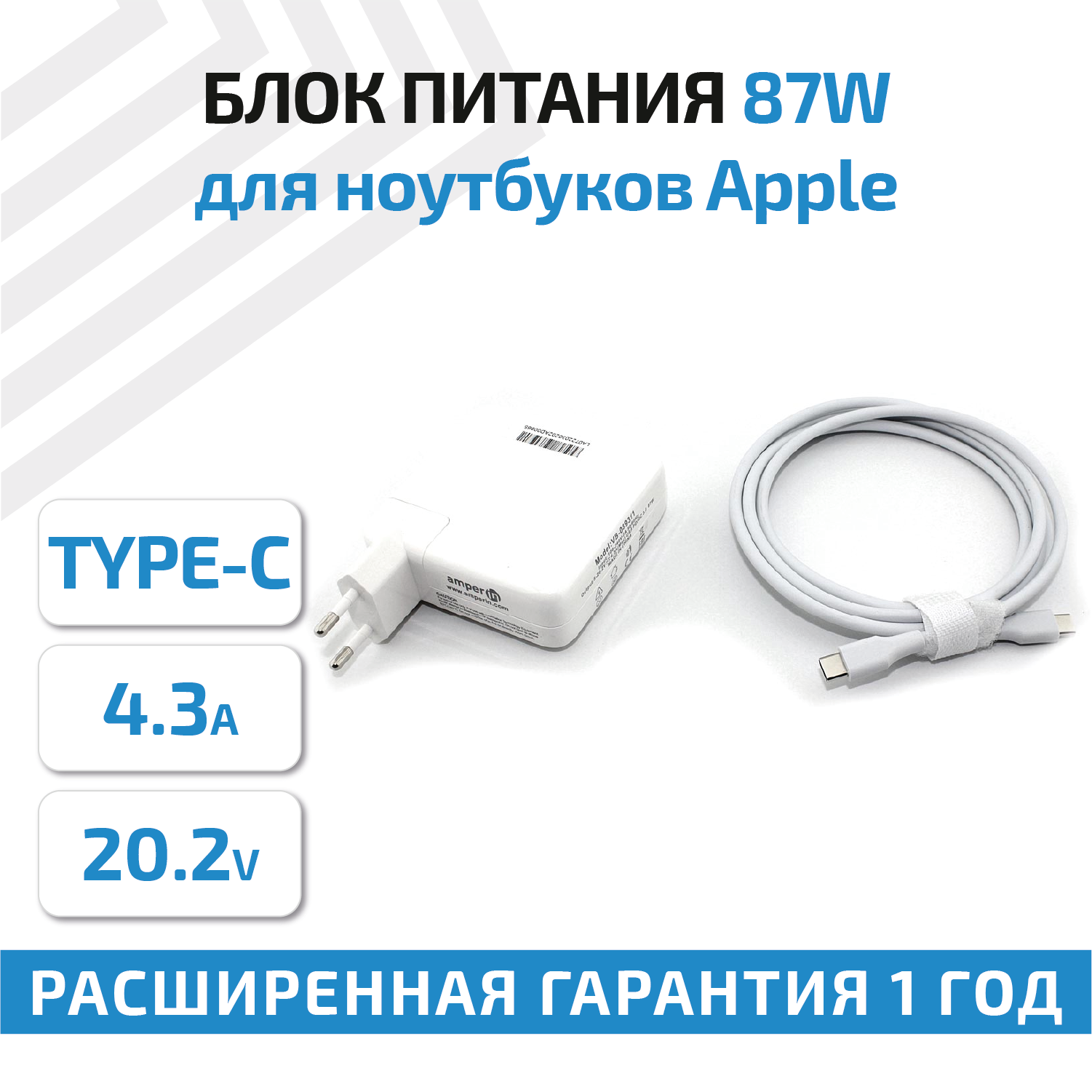 Блок питания (сетевой адаптер) Amperin AI-AP87C для ноутбуков Apple A1719 87W USB Type-C 20.2V 4.3A информация: