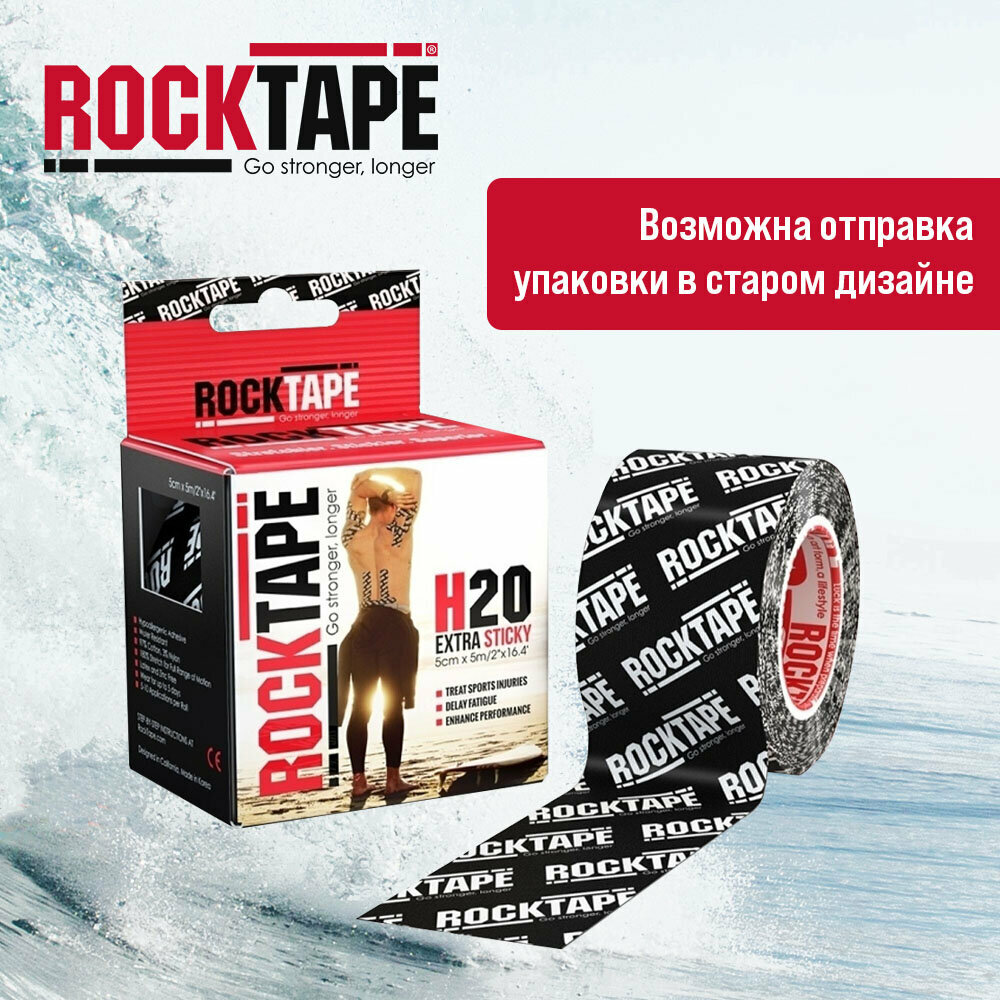 Кинезиотейп Rocktape H2O (водостойкий), 5 см х 5 м, черный лого информация: