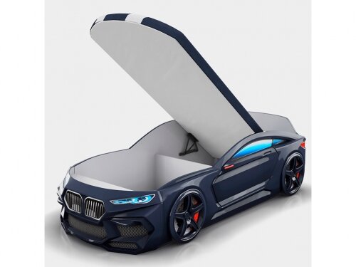 Romack кровать-машина Romeo-М цвет полиция черная c матрасом, ящиком для белья и подсветкой фар