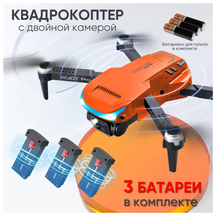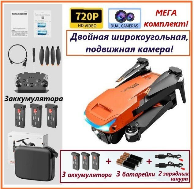 Отзывы на Дрон с двойной камерой. Квадрокоптер с подвижной камерой, 3 аккумулятора, 3 батарейки, 2 зарядных шнура! Беспилотник