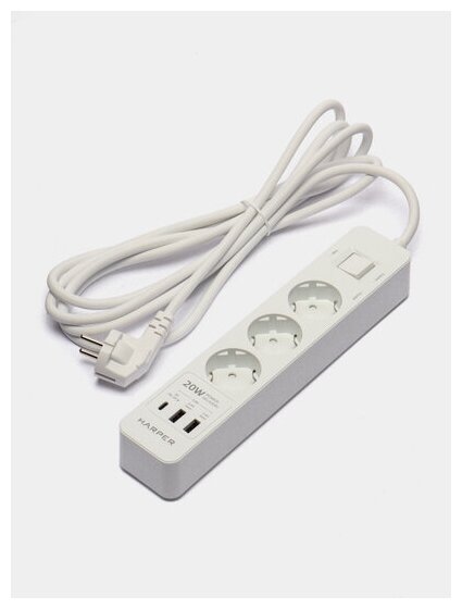 Harper Сетевой фильтр с USB зарядкой UCH-350 White PD3.0 3 роз1,5м 2xUSB+1xType-C портами, 4000W