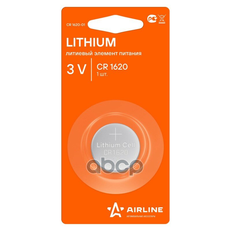 AIRLINE CR162001 Батарейка CR1620 3V для брелоков сигнализаций литиевая комплект 4 шт. - Airline арт. CR162001