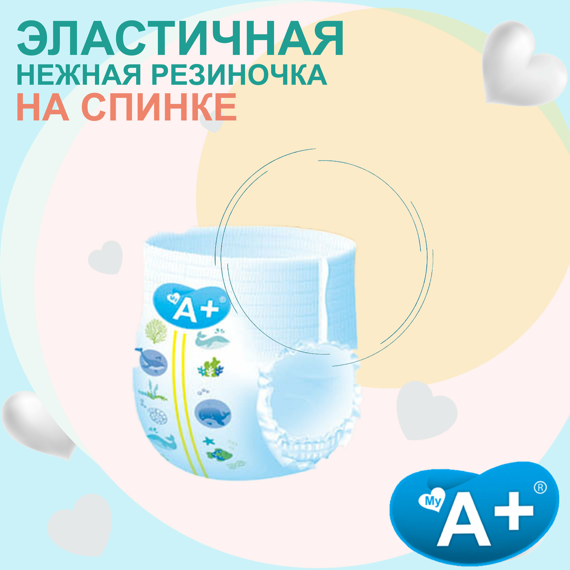 Детские подгузники-трусики My А+ Comfortable, размер S (3-7кг) (34шт/уп)/Q-форма, ультратонкие, мягкий верхний слой Hot Air, с индикатором влажности