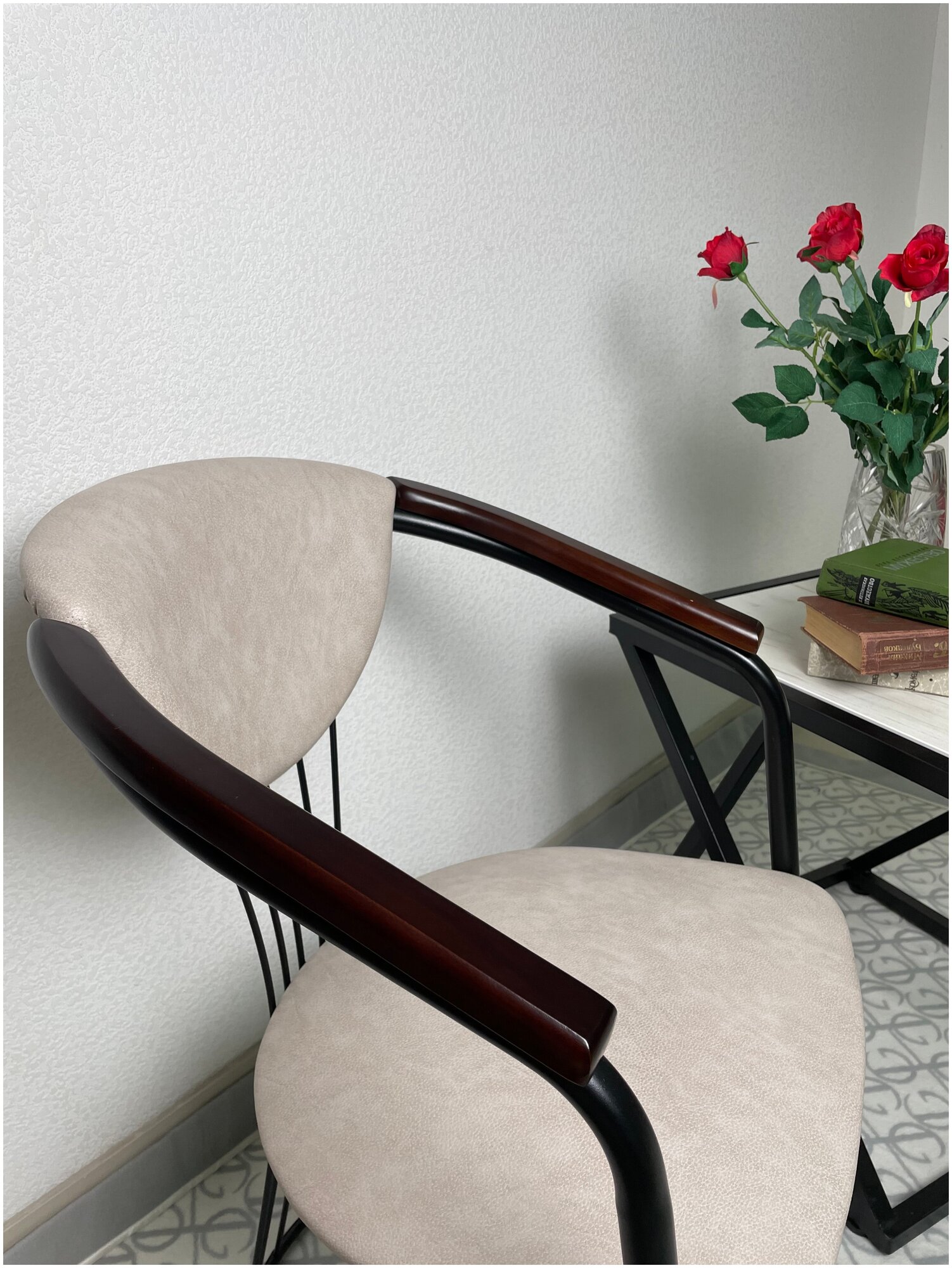 Кресло стул для кухни со спинкой с подлокотниками лаунж лофт чилл бежевое