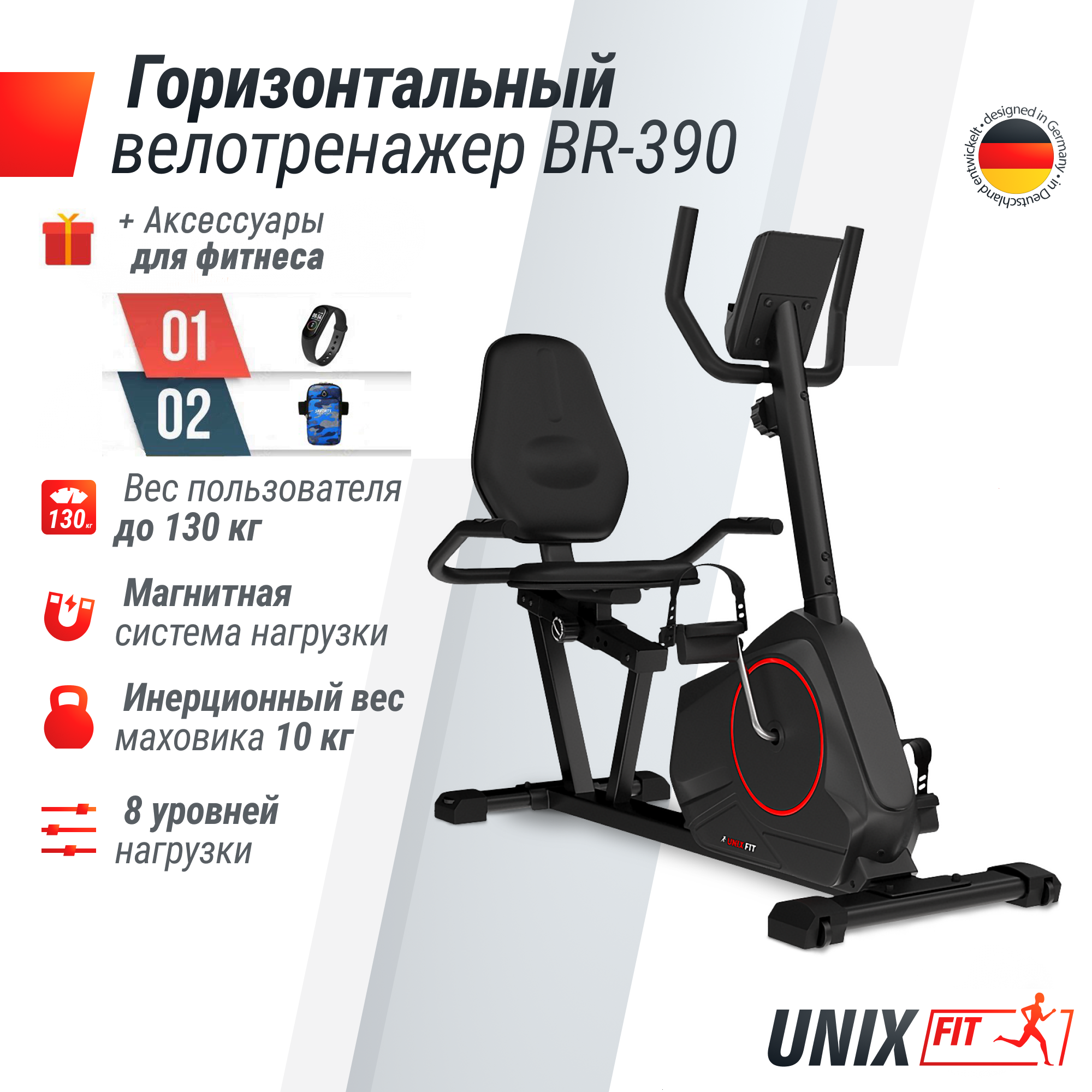 Горизонтальный велотренажер UNIXFIT BR-390 + аксессуары для фитнеса информация:
