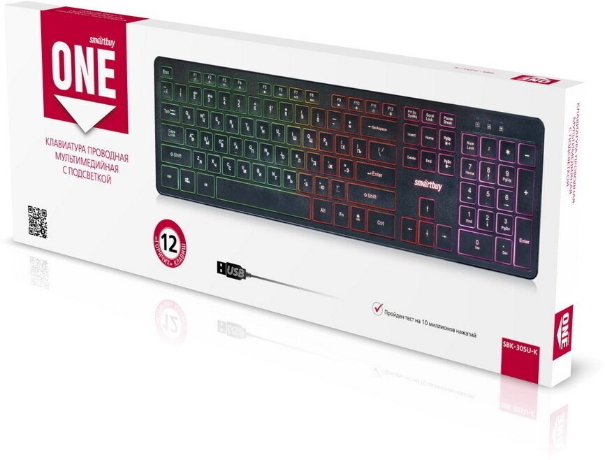 Клавиатура проводная с подсветкой Smartbuy ONE 305 USB черная [SBK-305U-K] информация: