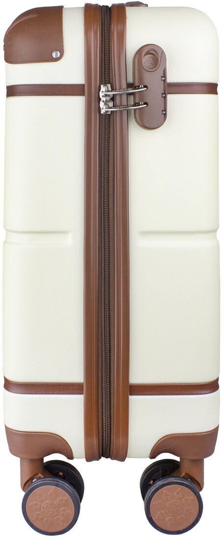 Чемодан на колесах ручная кладь Tour Vintage малый S, с кожаными ремешками PROFFI TRAVEL PH10219, бежевый, белый