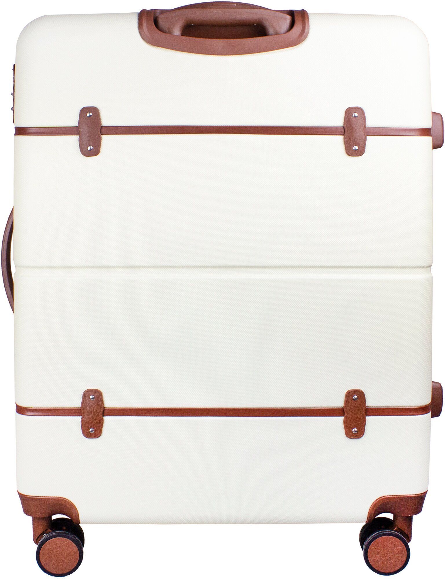 Чемодан на колесах ручная кладь Tour Vintage малый S, с кожаными ремешками PROFFI TRAVEL PH10219, бежевый, белый