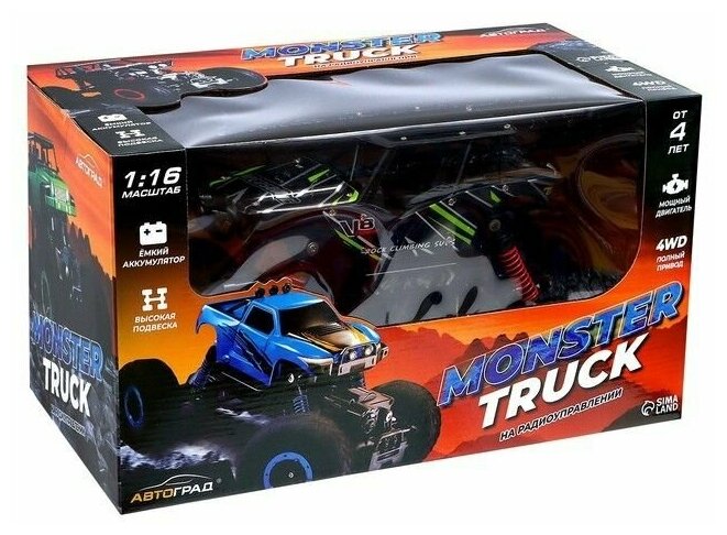 Автоград Джип радиоуправляемый Monster, 1:16, 4WD, работает от аккумулятора, цвет зеленый Автоград 7 . информация: