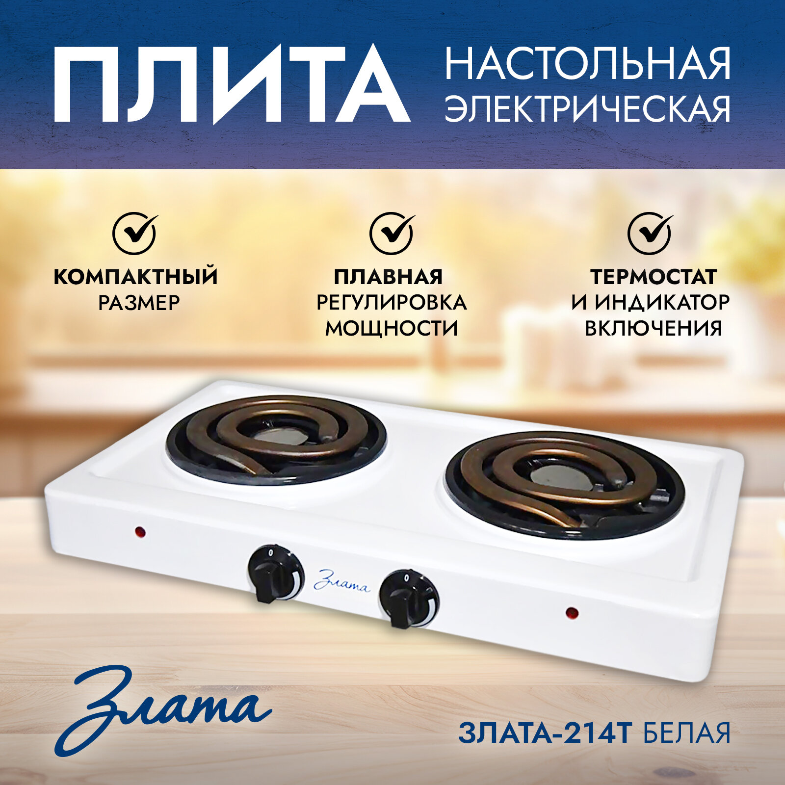 Электрическая настольная плита Злата 214 Т, белый