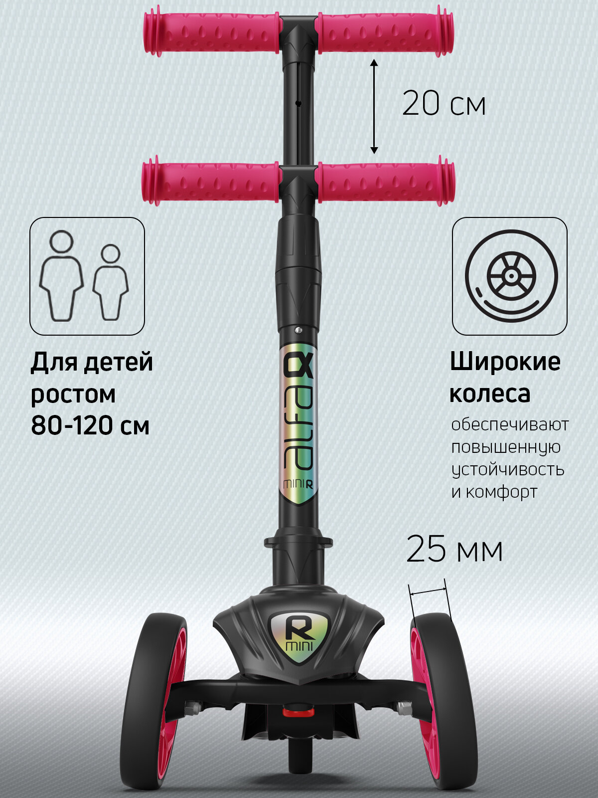 Самокат, самокат трехколесный детский, с цветными колесами и цветными ручками, Buggy Boom Alfa Mini R, ягодный сорбет