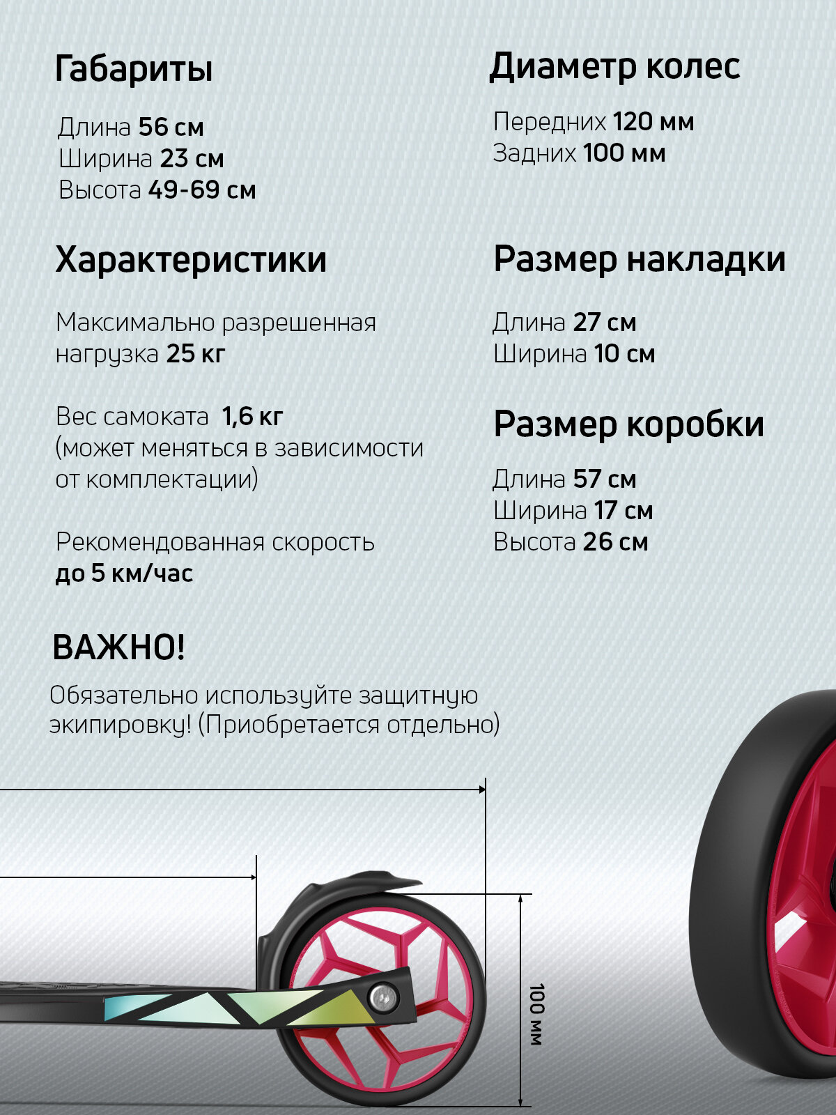 | Диаметр переднего колеса | 120 мм |