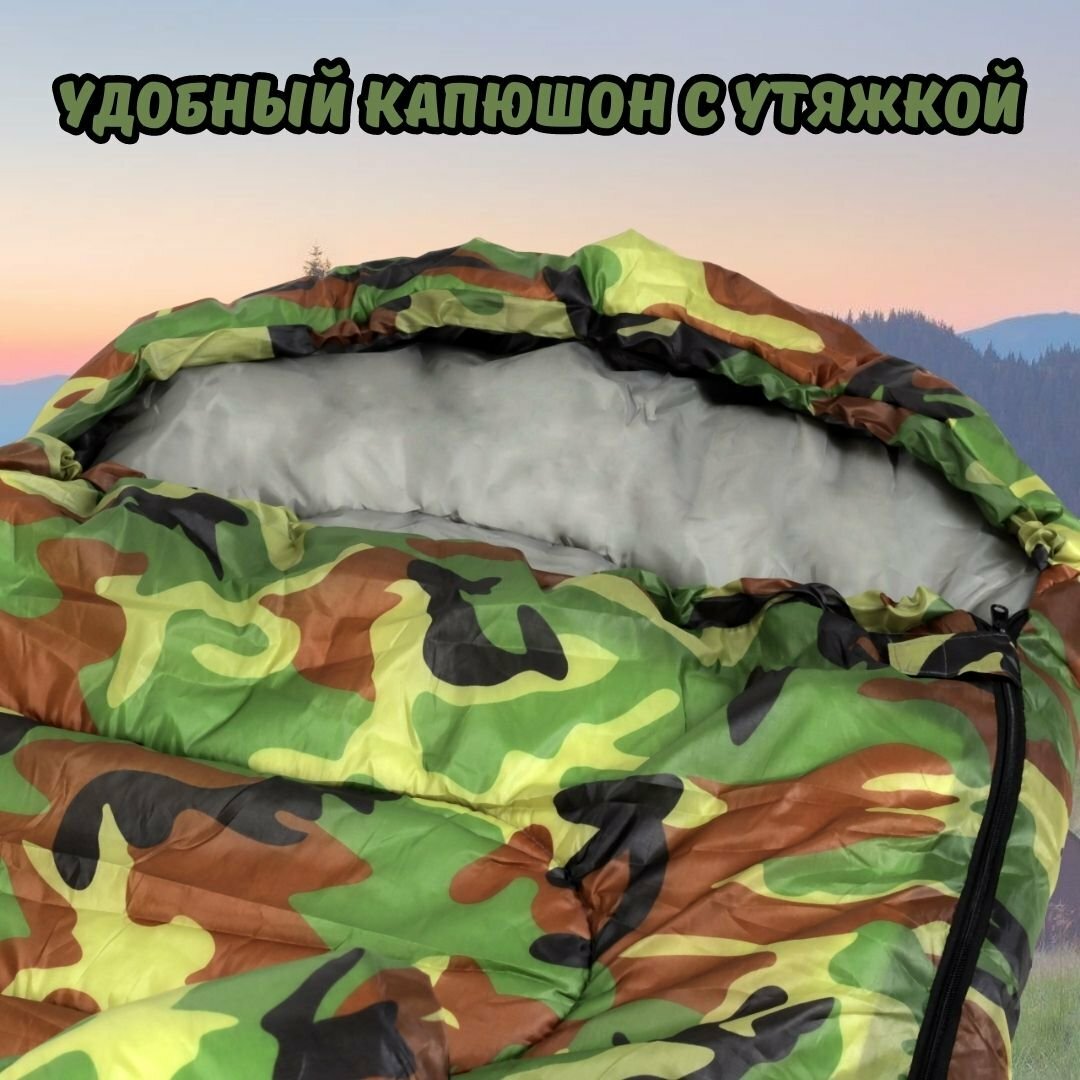 Спальный мешок Оксфорд 350 непромокаемый туристический c капюшоном, от -15 до +15, 215х75 см, by MAD SWAMP, спальник на 4 сезона