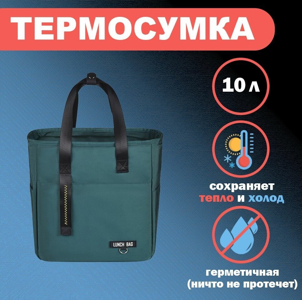 10 цен на Термосумка для обеда, сумка холодильник, герметичная, материал PEVA, объем 10 литров, цвет зеленый, 27х15х28