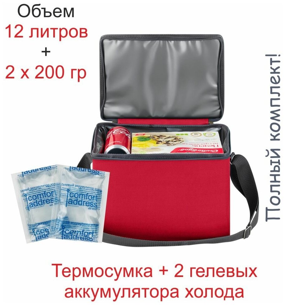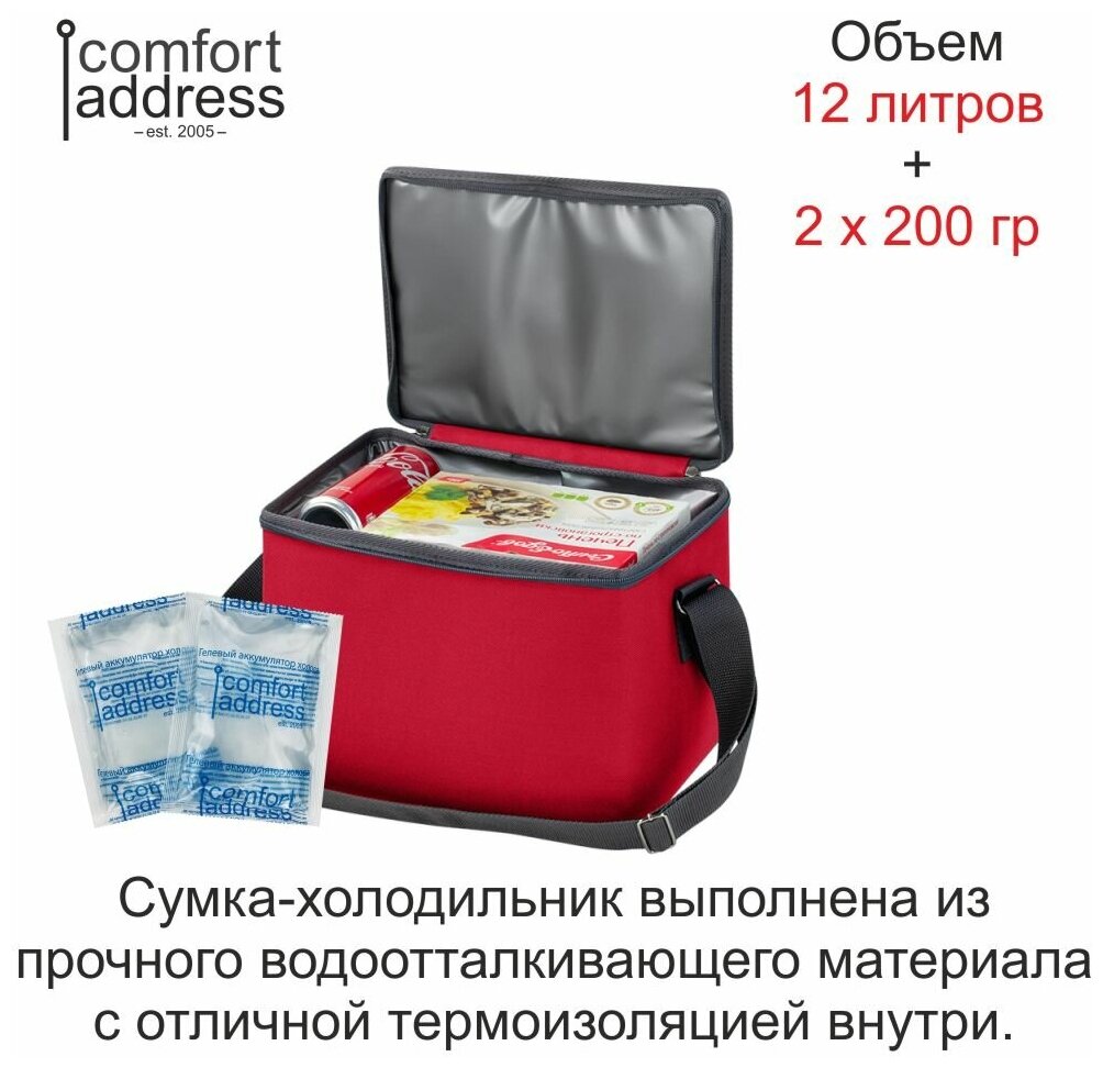 Сумка-холодильник 12л. + 2 гелевых аккумулятора холода по 200 гр. "Comfort Address" информация: