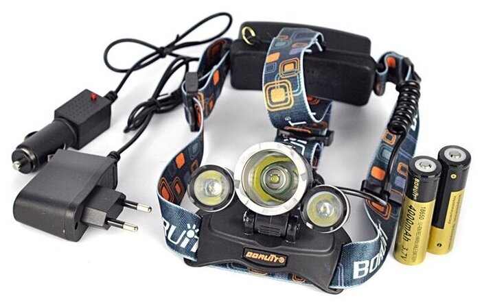 10 цен на Налобный фонарь с тремя регулируемыми ( диодами фонарями) с аккумулятором