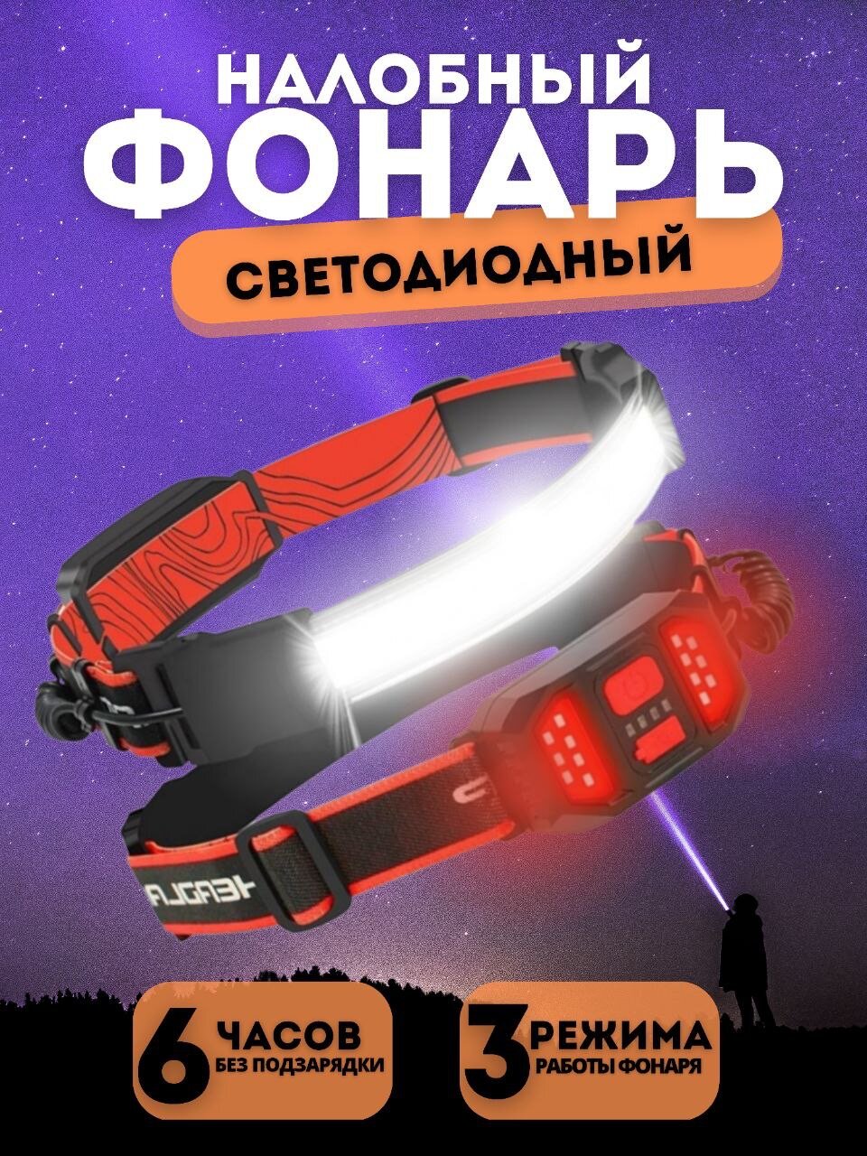 Налобный фонарь аккумуляторный, мощный светодиодный 18650