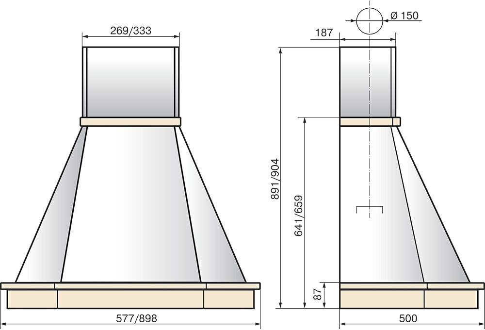 Вытяжка каминная Elikor Грань 60П-650-П3Л бежевый без багета