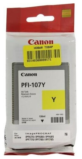 Картридж для струйного принтера CANON PFI-107 Y (6708B001) информация: