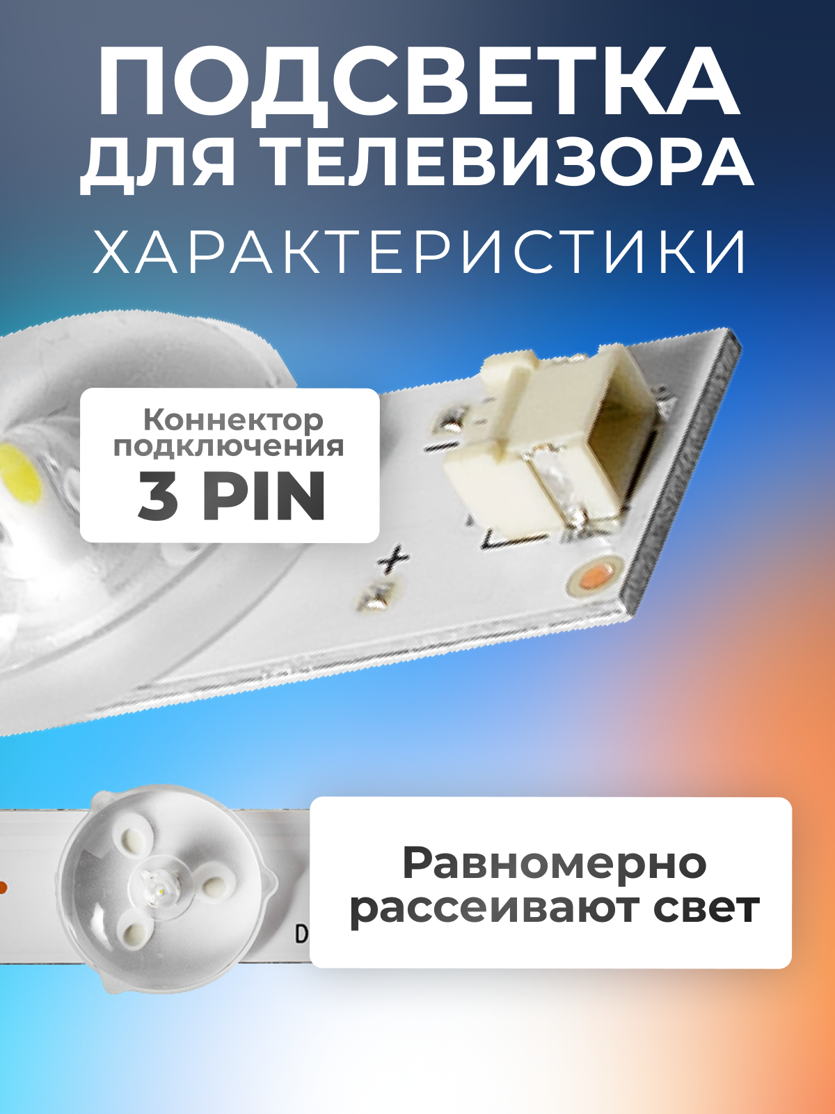 | Дополнительная информация | Длина планки 580mm , количество светодиодов на планке 6 led , коннектор подключения подсветки 3 pin , напряжение светодиодов 3V , тип рассеивателя YX-TV-18-0D25-1A (пуговка) |