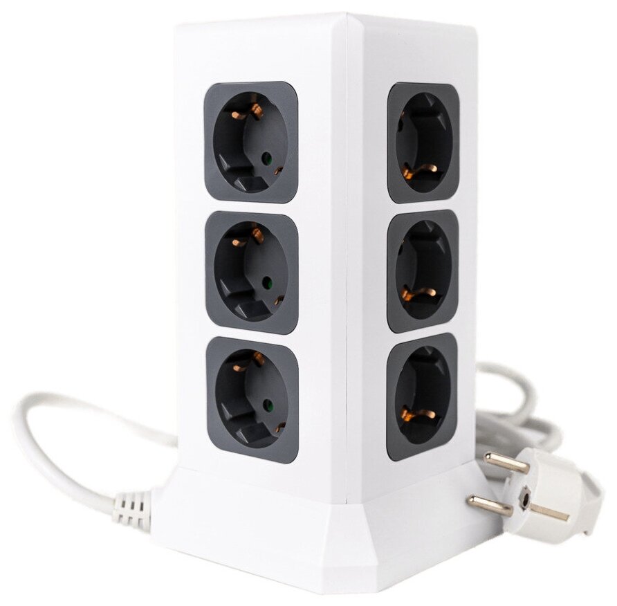 ROCKETSOCKET Удлинитель Tower Extended 12 Euro 16A, 4 USB 3A+C с блоком 5В/3.4А, кабель 2,0 м цвет белый GNS5004 5 493 ₽