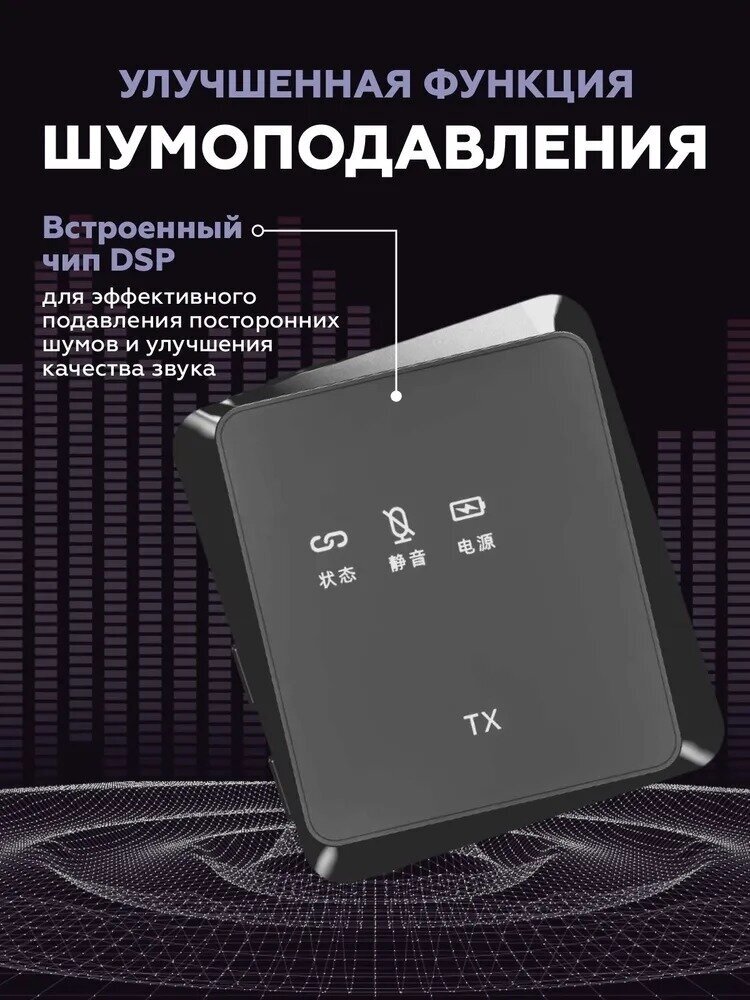 Беспроводной петличный микрофон с шумоподавлением + приемник 3 в 1 для Type-C, Lightning, Aux (Черный) информация: