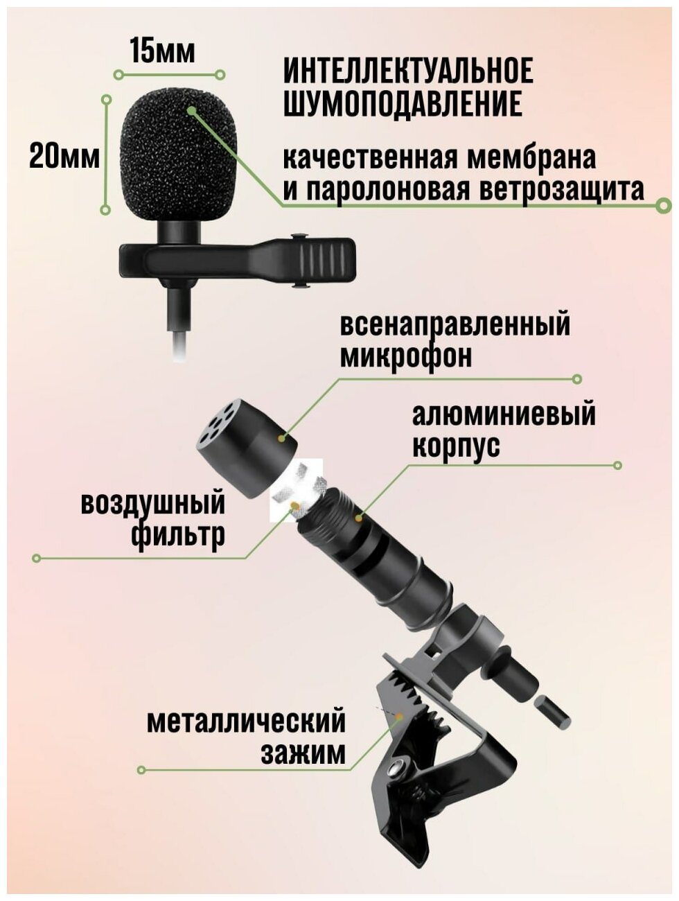 | Конструкция микрофона | петличный (клипса) |