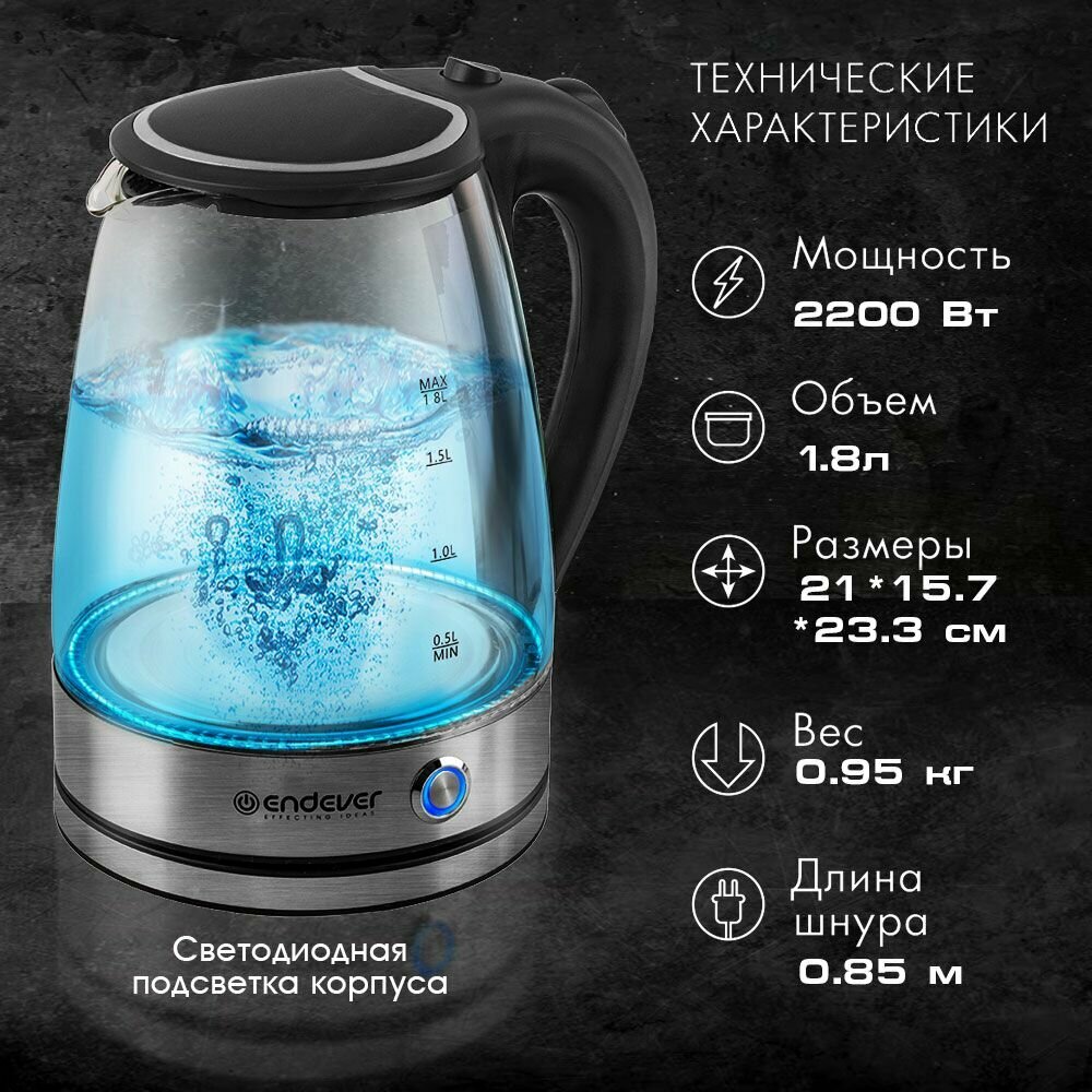Чайник электрический стеклянный Endever KR-345G / 1,8л / 2200 Вт/ с подсветкой 2 860 ₽