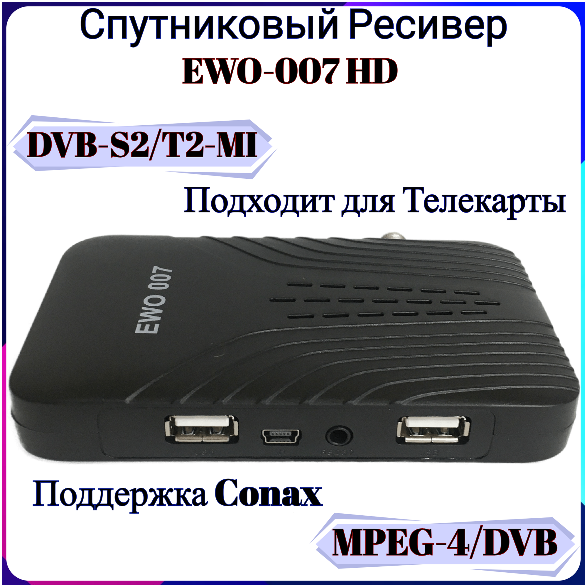 Цифровой спутниковый Ресивер EWO-007 HD MPEG-4/DVB-S2/T2-MI, поддержка Conax, подходит для Телекарты информация: