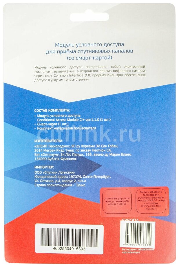 10 цен на Комплект спутникового ТВ триколор модуль усл.доступа со смарткартой Единый UHD Европа