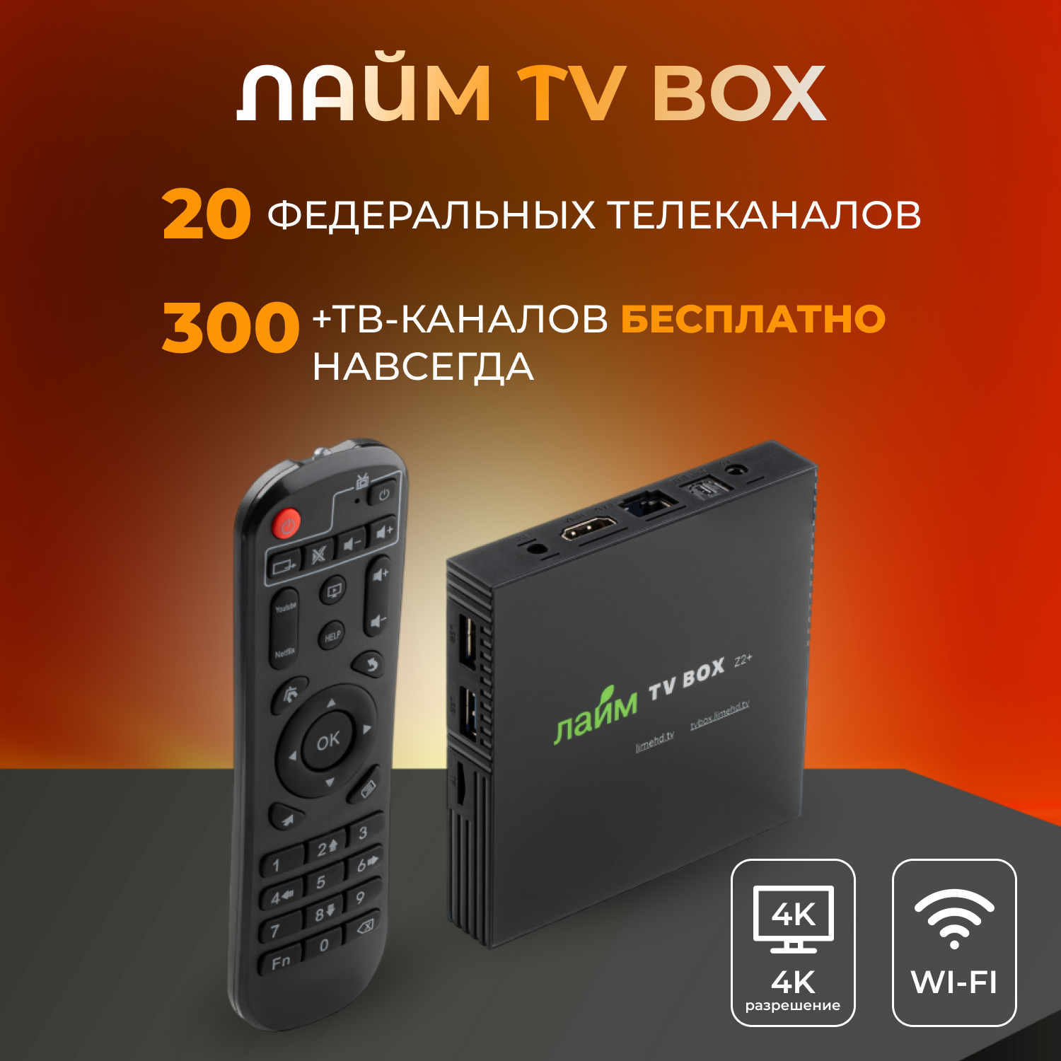 Лайм TV Box / Андроид ТВ приставка c WI FI/ 4К / Смарт ТВ / Медиаплеер 4/64Гб / + 300 ТВ-каналов бесплатно /приставка для цифрового тв информация: