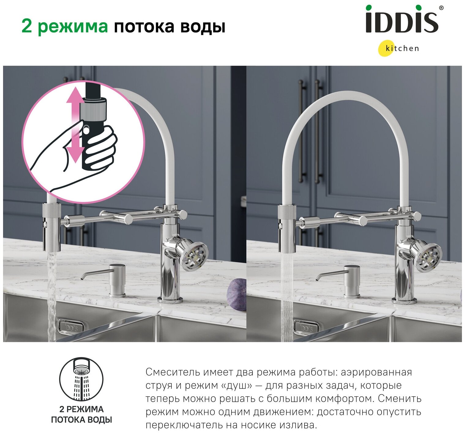 Смеситель для кухни IDDIS IDDIS, GRASBFLi05 Grange Смеситель для кухни, с гибким изливом, глянцевый хром/белый