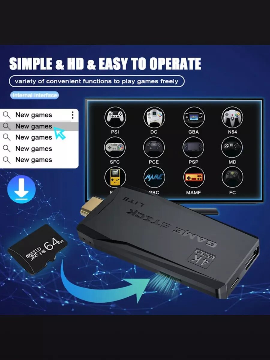 Игровая приставка, консоль Game Stick Lite 64Gb, 3555 игр, 4K, 2,4 ГГц, 8 бит, 16 бит, 32 бит