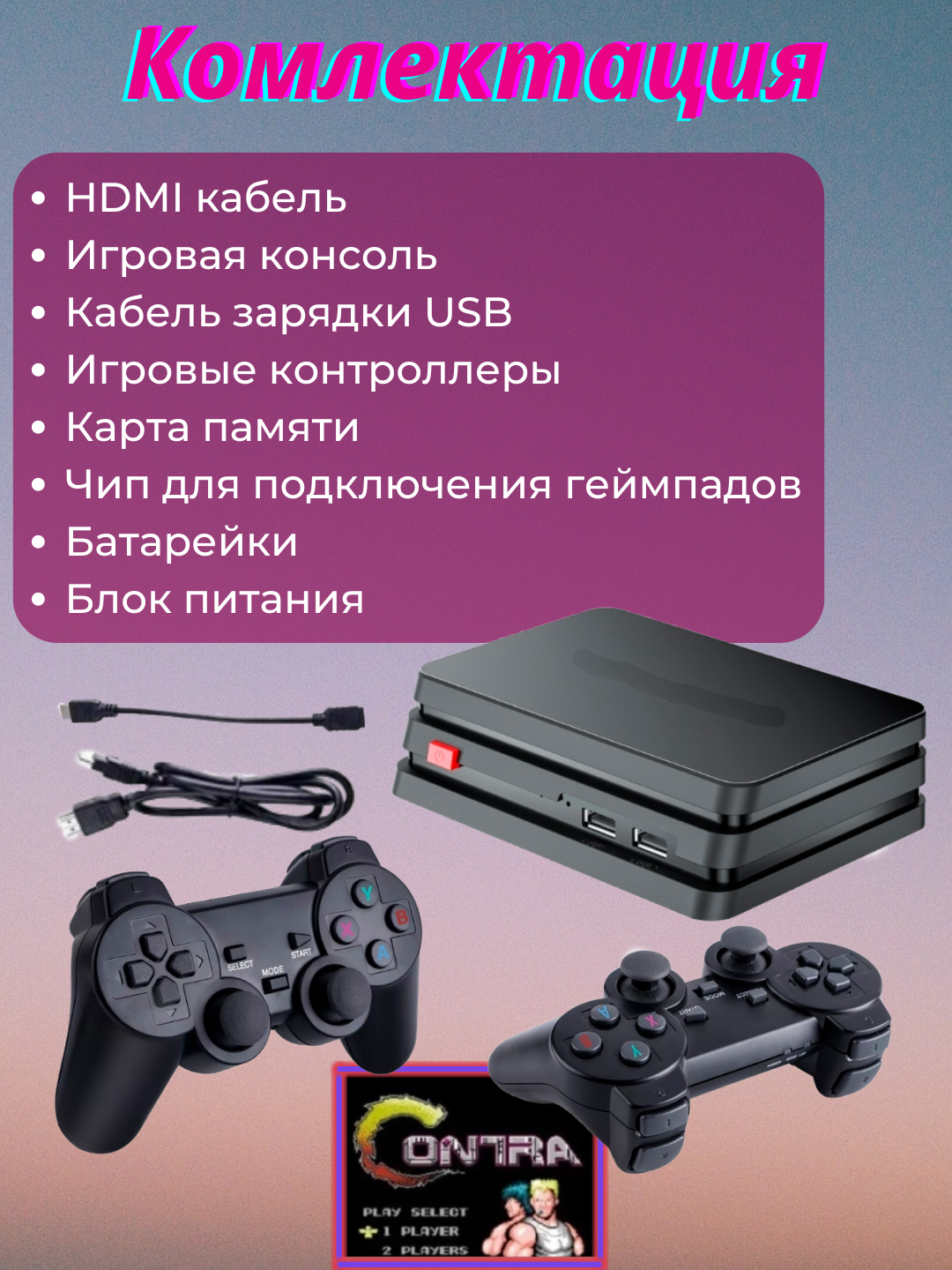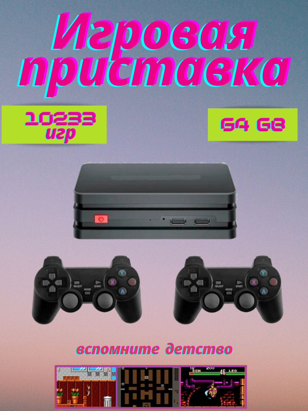 Игровая приставка M8PLUS с двумя беспроводными джойстиками со встроенными 10233 Ретро играми, 64 ГБ информация: