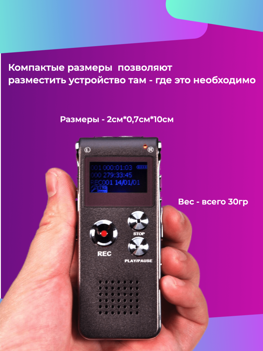 Диктофон Soroka-15.3 (mini) (E89531DI) + 2 подарка (microSD 32Gb и Power-bank) - автономная работа от аккумулятора до 83 часов - удаленный диктофон
