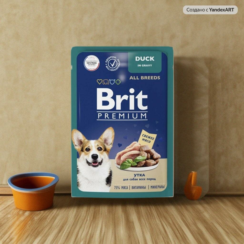 Брит Premium Пауч для взрослых собак всех пород утка в соусе, 14 x 85 г