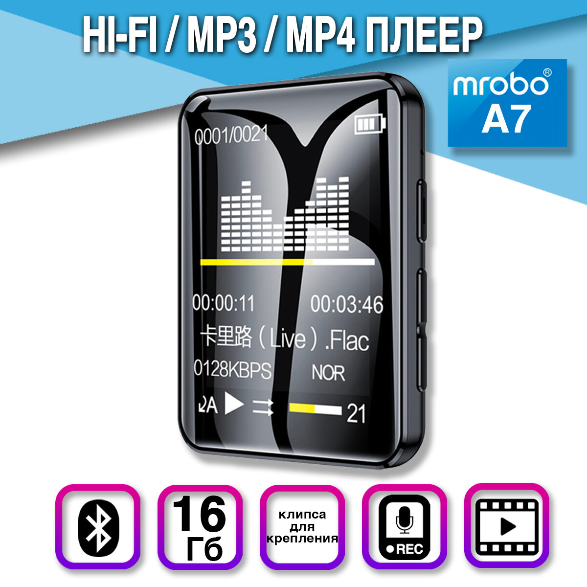 HiFi плеер MROBO A7 16Гб, Bluetooth 4.0, с клипсой информация: