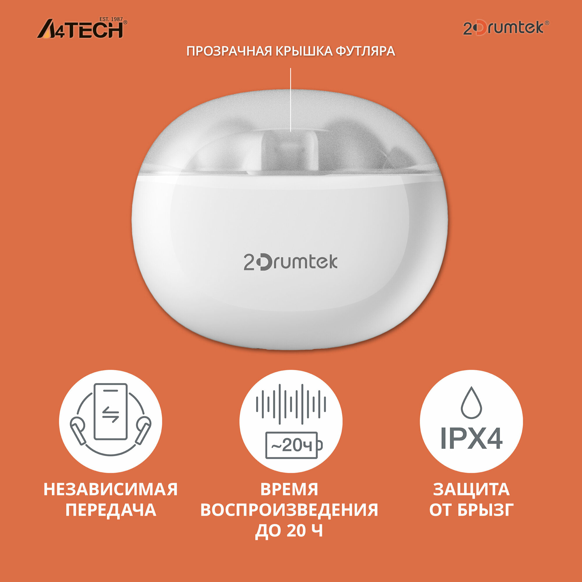 Наушники A4TECH 2Drumtek B25 TWS, Bluetooth, вкладыши, белый [b25 grayish white] информация: