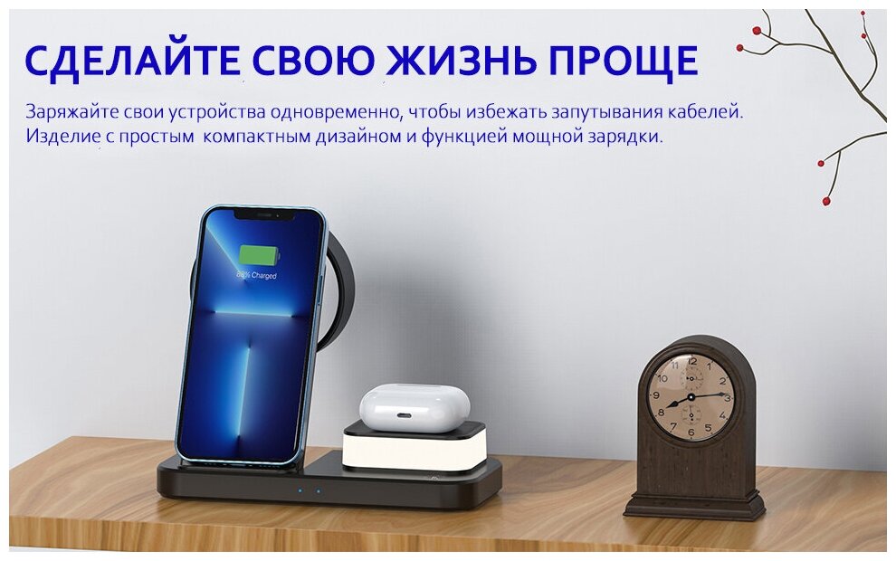 Отзывы на Беспроводная зарядная док-станция 4 в 1 для iPhone/iWatch/AirPods/ночник ABK-C500, PD/QC 3.0, черный