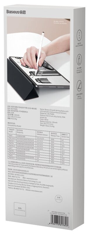 10 цен на Стилус Baseus Smooth Writing Active Stylus with LED Indicators (with Palm-rejection) с кабелем Type-C 3A 0.3m Белый (SXBC040102)