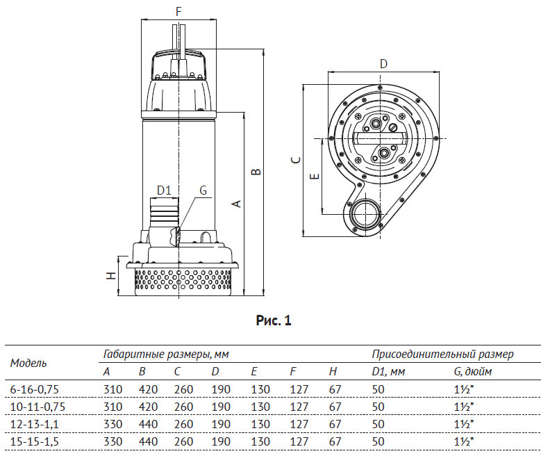 | Тип погружного насоса | дренажный |