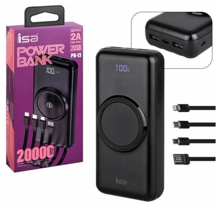 Отзывы на Внешний аккумулятор 20000 мАч с 4 кабелями, с беспроводной зарядкой
