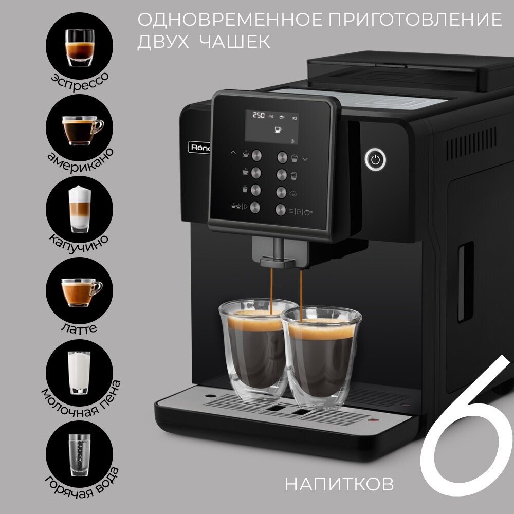 | Дополнительные функции | автоматическая декальцинация / одновременное приготовление двух чашек / подача горячей воды / подогрев чашек |