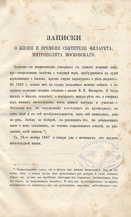 Записки о жизни и времени святителя Филарета, митрополита Московского информация: