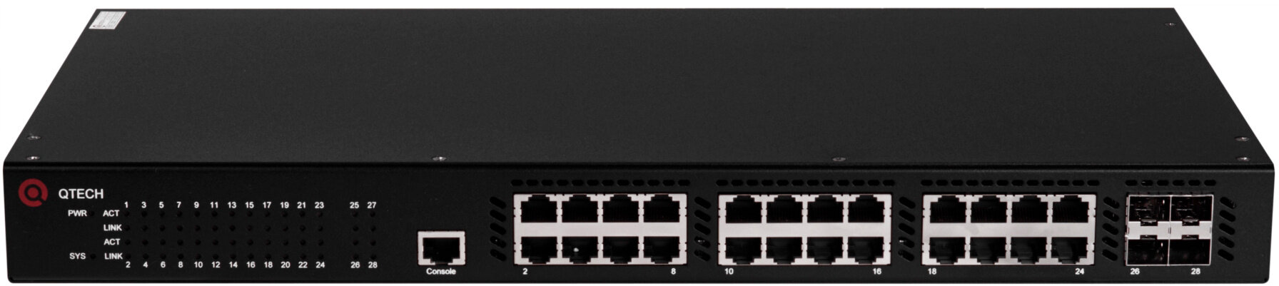 Коммутатор QTECH Managed stackable switch L2+ PoE 802.3 af/at 24 port 10/100/1000BASE-T, 4 x 10GbE SFP+