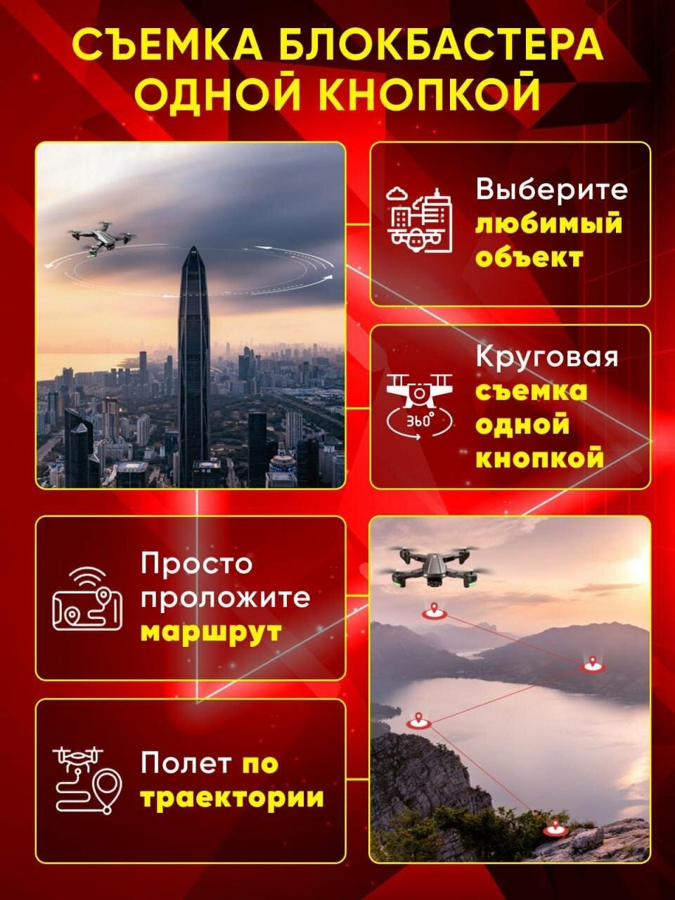 | Особенности | автопилот / защита винтов / программируемый / пульт управления в комплекте / складная конструкция |