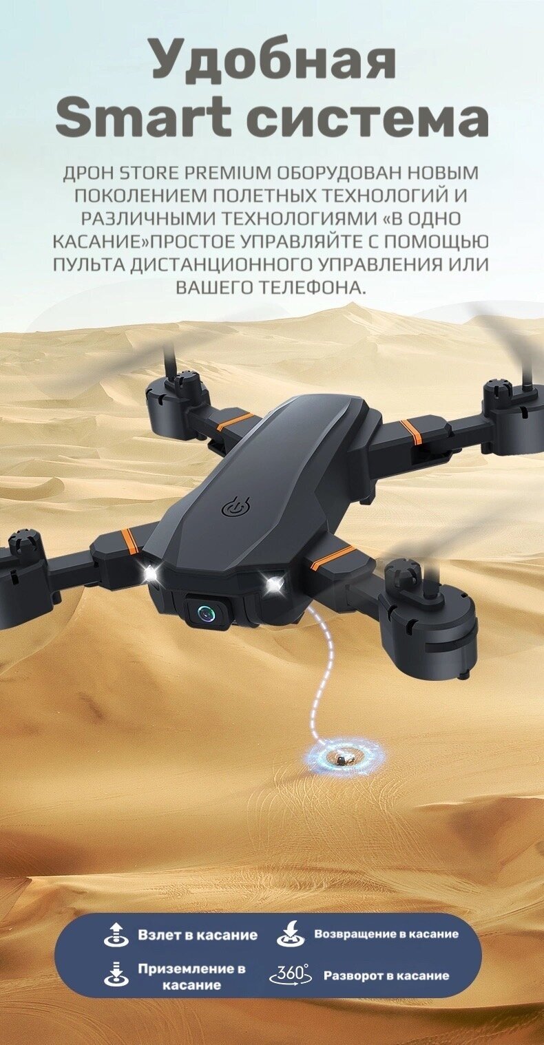 Квадрокоптер Дрон с двумя камерами 4k на радиоуправлении с телефона Store Premium Модель 2023 Года информация: