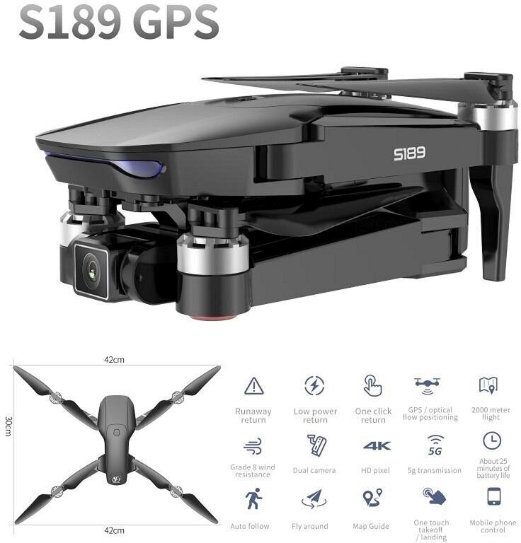10 цен на Мощный дрон квадропоптер S189 EIS GPS с GPS , 2-осевой карданной камерой 4K HD- ESC дальностью 1000 метров и функцией обхода препятствий