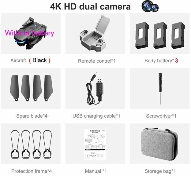 10 цен на Квадрокоптер с двойной камерой KY910 мини черный цвет 3 аккумулятора